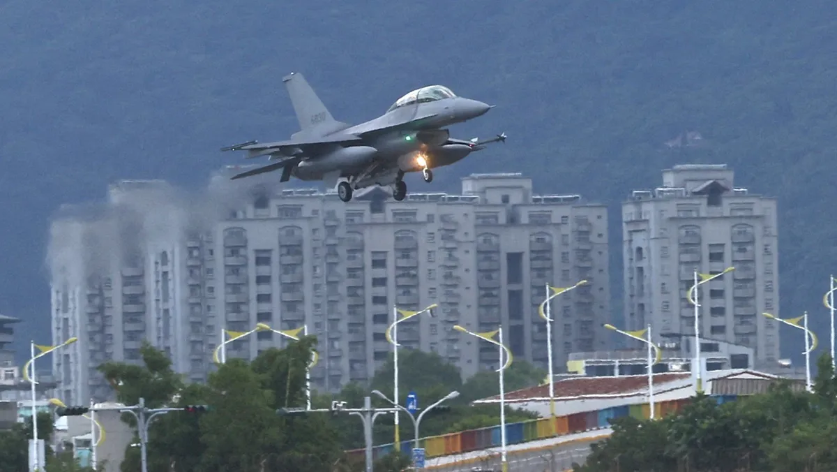 مقاتلة أميركية الصنع من طراز F-16V تهبط في قاعدة جوية بهوالين، في تايون، 17 أغسطس 2022 - Reuters