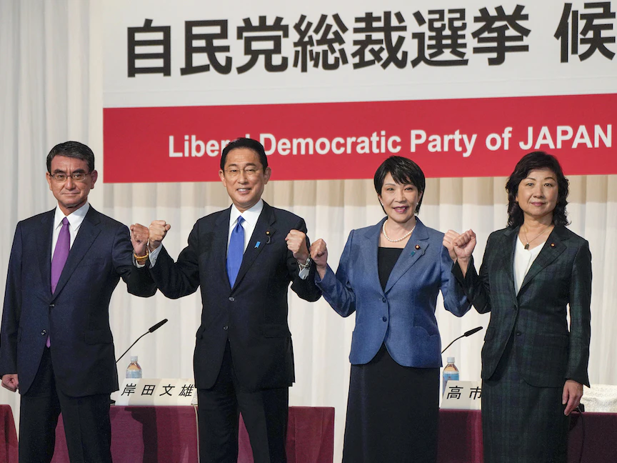 وتحدث المرشحون الأربعة لخلافة يوشيهيدي سوغا، رئيس الوزراء والرئيس الحالي للحزب الليبرالي الديمقراطي المحافظ، والذي يهيمن على الحياة السياسية في البلاد، الواحد تلو الآخر في مقر الحزب بالعاصمة طوكيو، الجمعة.