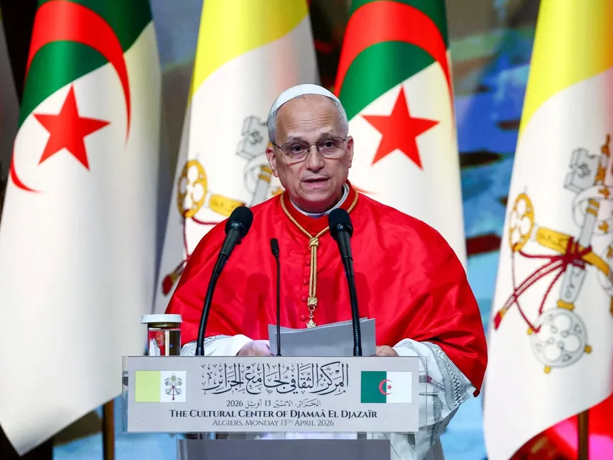 بابا الفاتيكان ليو الرابع عشر يلقي خطاباً عقب وصوله إلى الجزائر. 13 أبريل 2026 - Reuters