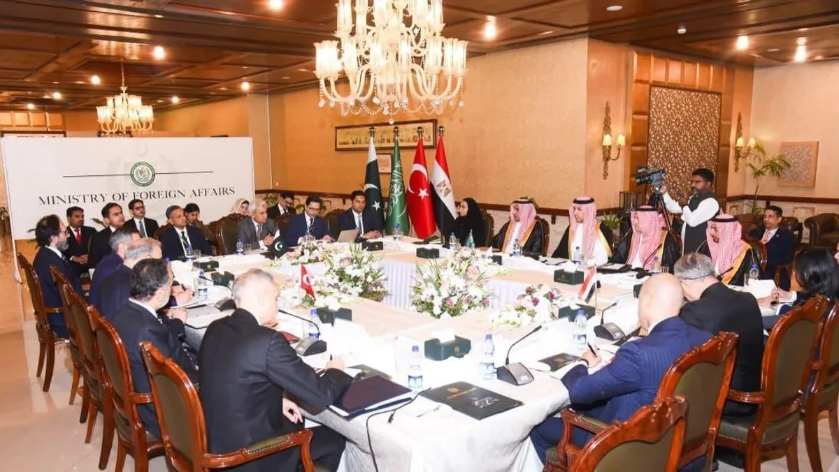 استضافت العاصمة الباكستانية إسلام آباد، الثلاثاء، اجتماعاً لكبار المسؤولين من باكستان والسعودية ومصر وتركيا، وذلك متابعة للاجتماع التشاوري لوزراء خارجية الدول الأربع والذي عقد في 29 مارس.