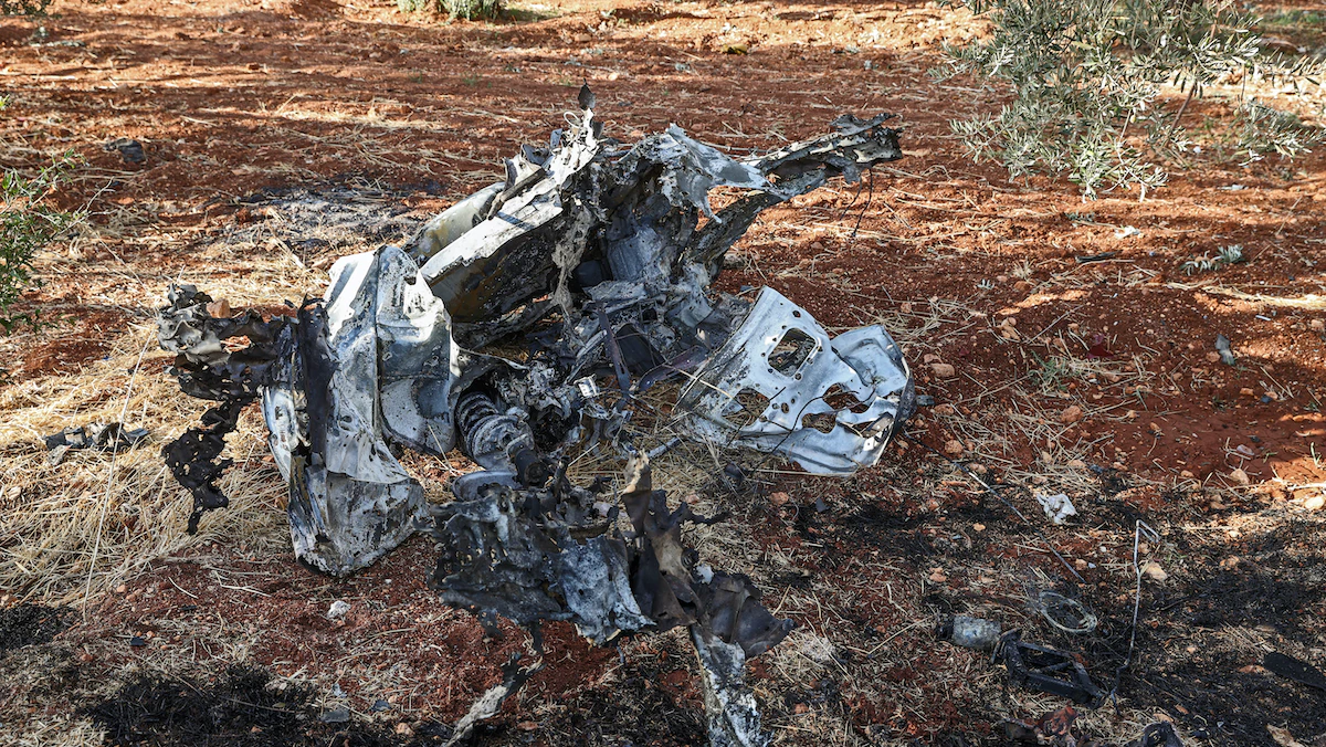 صورة تظهر حطام السيارة التي يعتقد أنه تم استهدافها بغارة أميركية في إدلب، سوريا، 20 سبتمبر 2021 - AFP