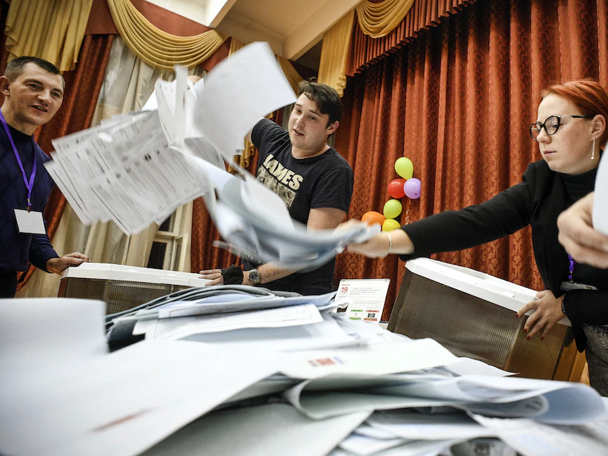 وكثفت موسكو خلال العام الأخير، عمليات منح الجنسية الروسية للمواطنين الأوكرانيين في هاتين المنطقتين التي أعلنتا الانفصال من جانب واحد عن أوكرانيا بدعم من موسكو. وتشير إحصاءات إلى حصول نحو 650 ألف مواطن في المنطقتين على الجنسية الروسية، وشارك في الانتخابات أقل بقليل من نصفهم.