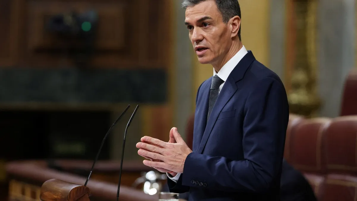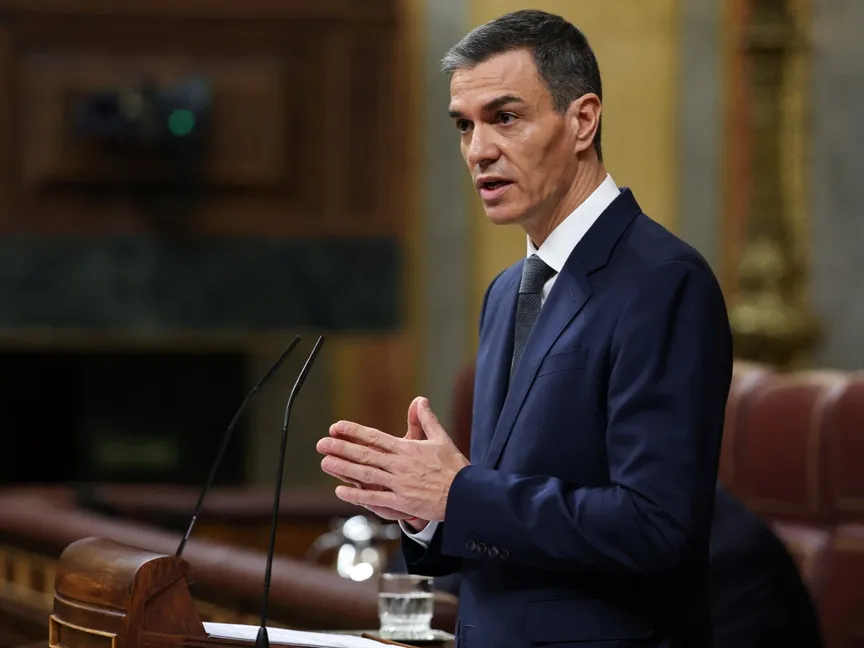 رئيس الوزراء الإسباني بيدرو سانشيز يلقي كلمة أمام البرلمان في مدريد. 11 فبراير 2026 - Reuters