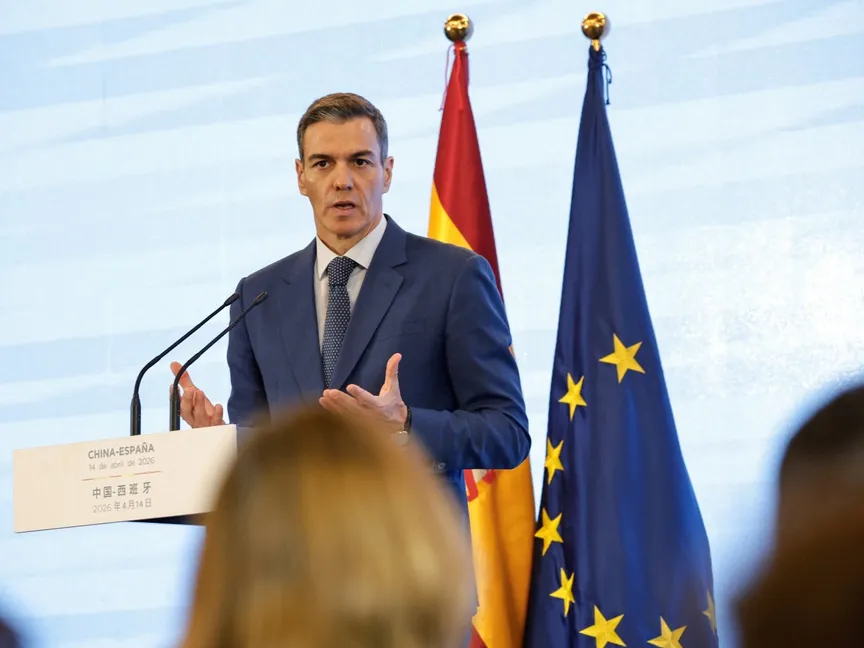 رئيس الوزراء الإسباني بيدرو سانشيز خلال مؤتمر صحافي في العاصمة الصينية بكين. 14 أبريل 2026 - REUTERS