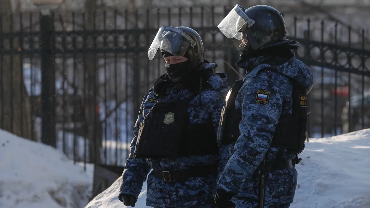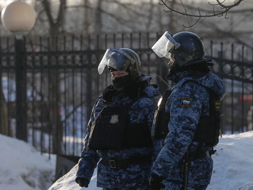 عناصر من الأمن الروسي يقفون خارج مبنى محكمة في موسكو بروسيا. 10 مارس 2021 - Reuters