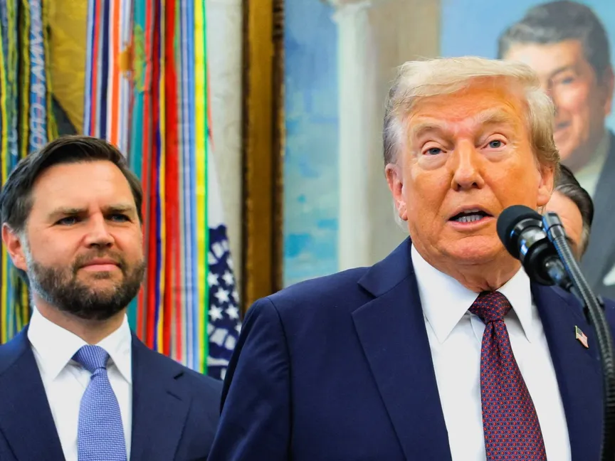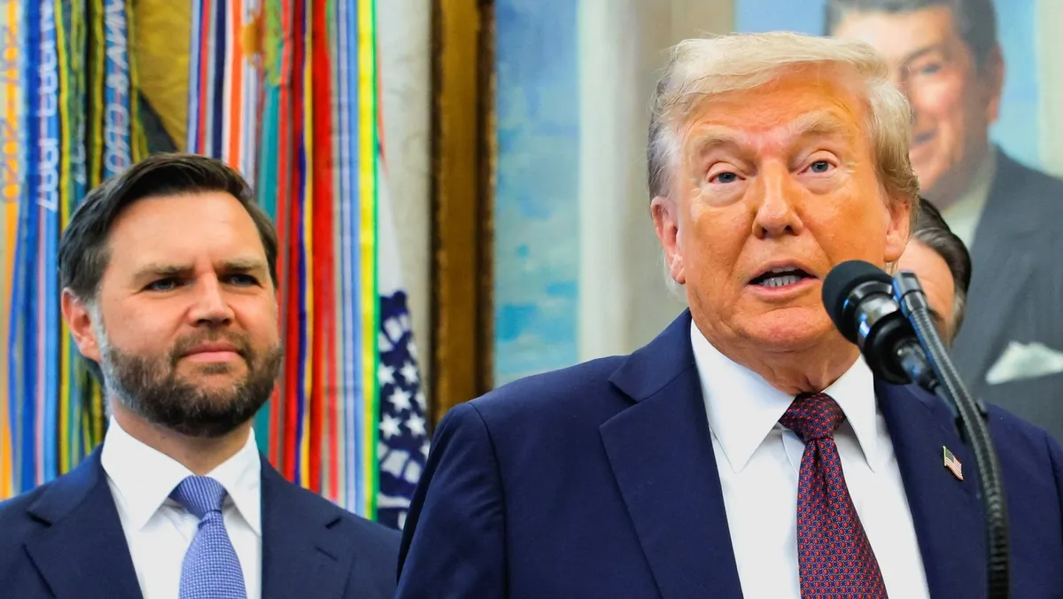 الرئيس الأميركي دونالد ترمب مع نائبه جي دي فانس في المكتب البيضاوي في البيت الأبيض بواشنطن العاصمة. 2 سبتمبر 2025 - Reuters