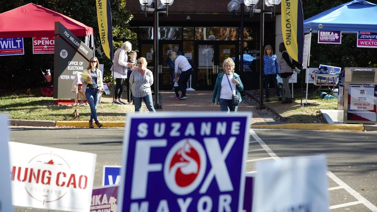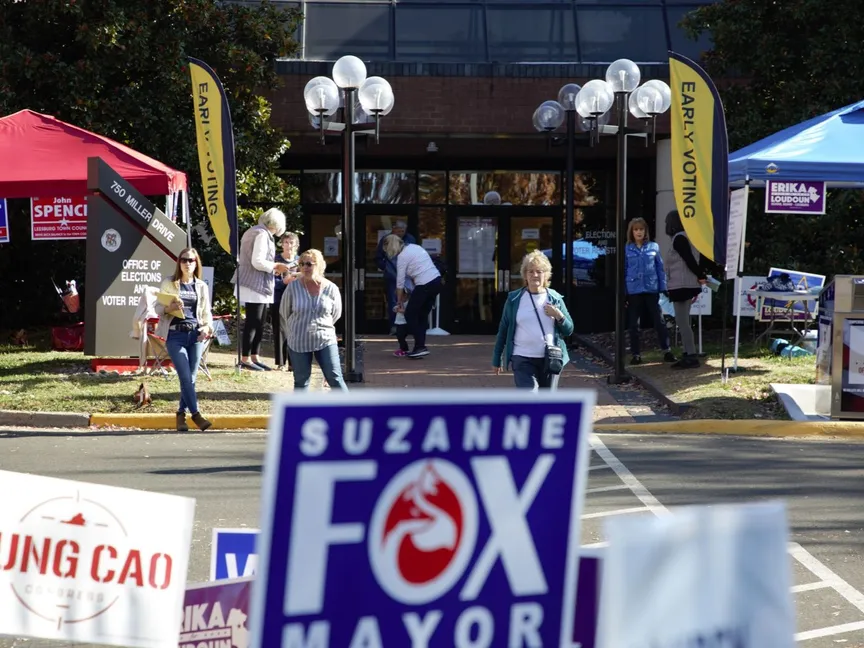 مكتب اقتراع للتصويت المبكر في انتخابات التجديد النصفي الأميركية بمدينة ليسبورغ بولاية فرجينيا- 3 نومفبر 2022 - الشرق