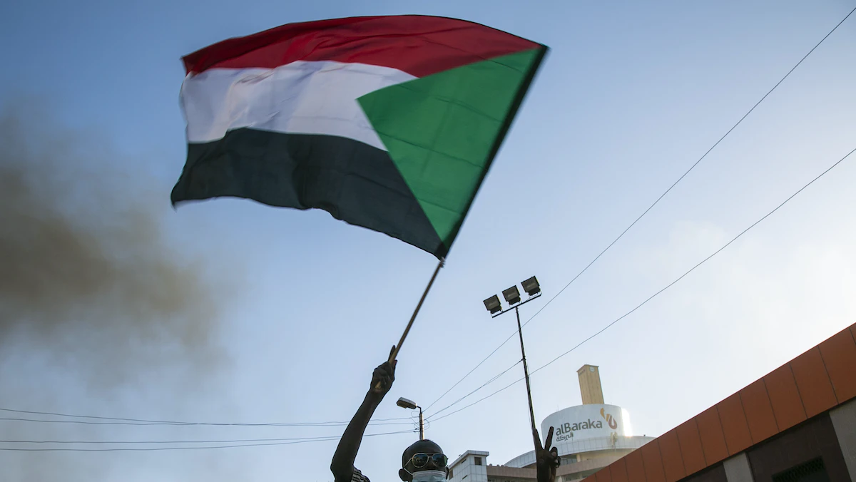 متظاهر يحمل علم السودان في ذكرى الاحتجاجات التي أطاحت بالرئيس السابق عمر البشير في العاصمة الخرطوم - 19 ديسمبر 2020 - Getty Images