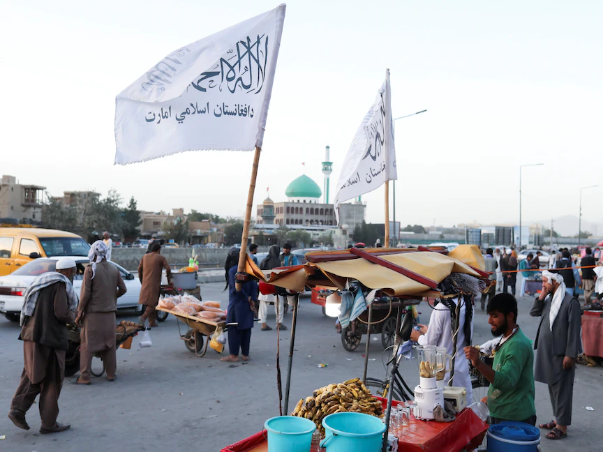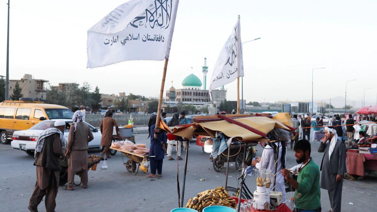 أعلام طالبان في أحد شوارع كابول، أفغانستان، 16 سبتمبر 2021 - via REUTERS