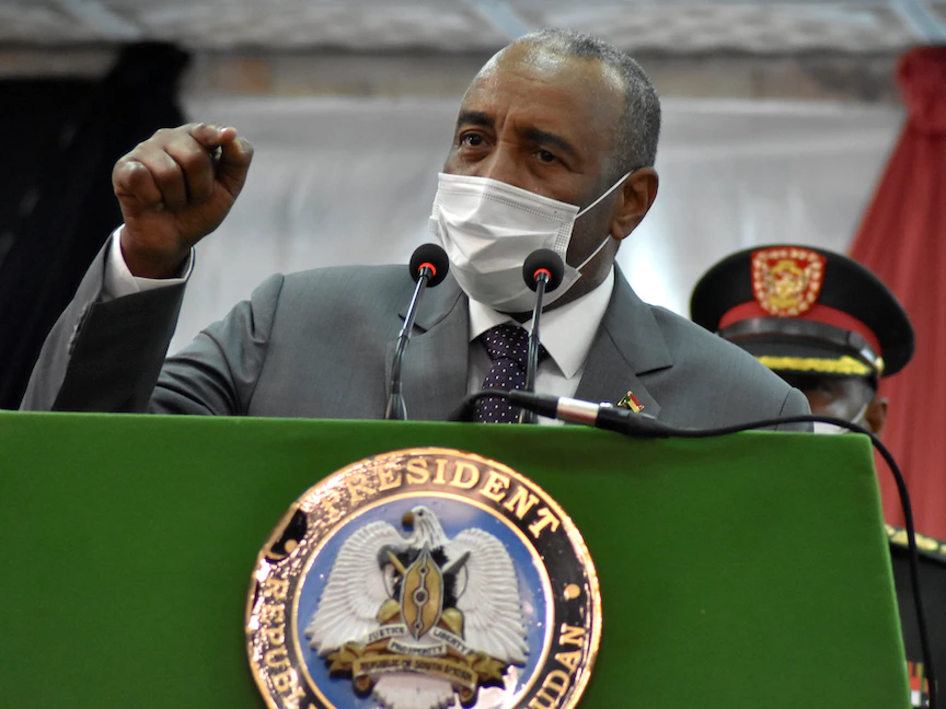 رئيس المجلس السيادي السوداني اللواء عبد الفتاح البرهان بعد التوقيع على إعلان مبادئ بين الحكومة الانتقالية السودانية والحركة الشعبية لتحرير السودان في جوبا- 28 مارس 2021.  - REUTERS