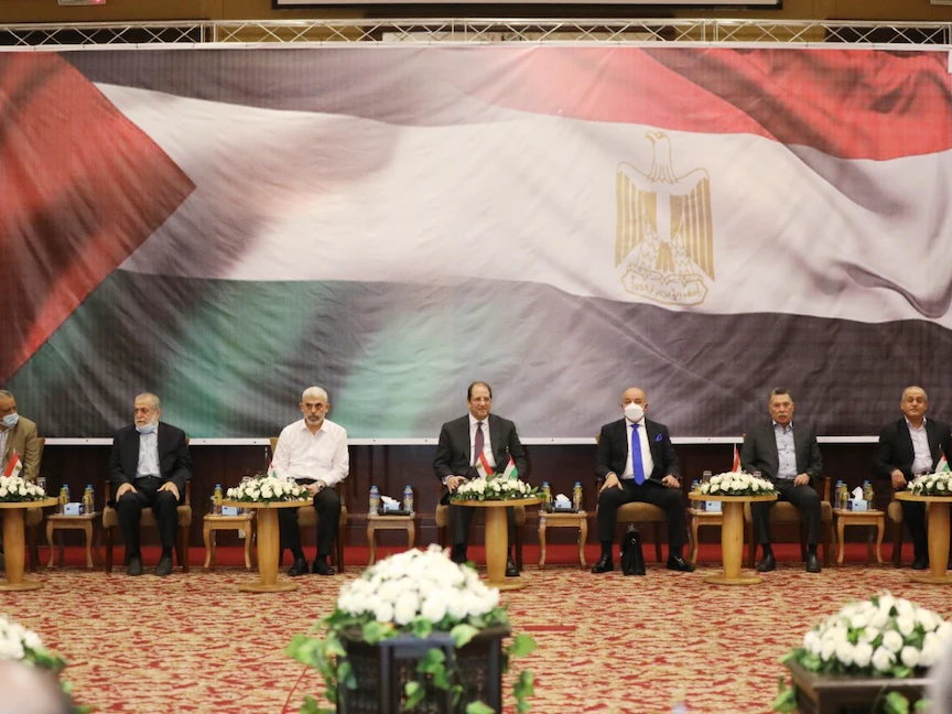 رئيس جهاز المخابرات العامة المصري اللواء عباس كامل خلال لقائه بقيادات حركة حماس في قطاع غزة - 31 مايو 2021 - "الشرق"
