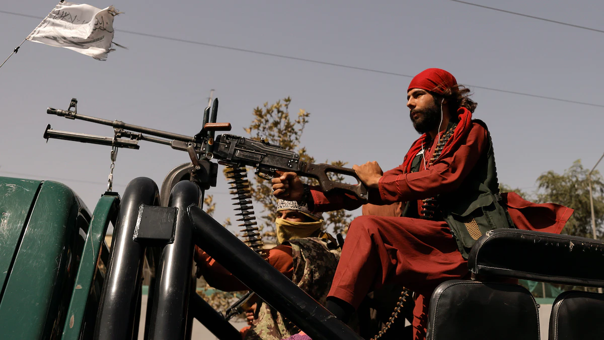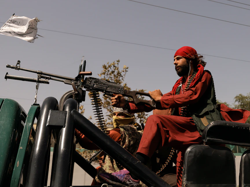 عناصر من طالبان على متن شاحنة صغيرة مدججة بالسلاح في كابول - 3 أكتوبر 2021 - REUTERS