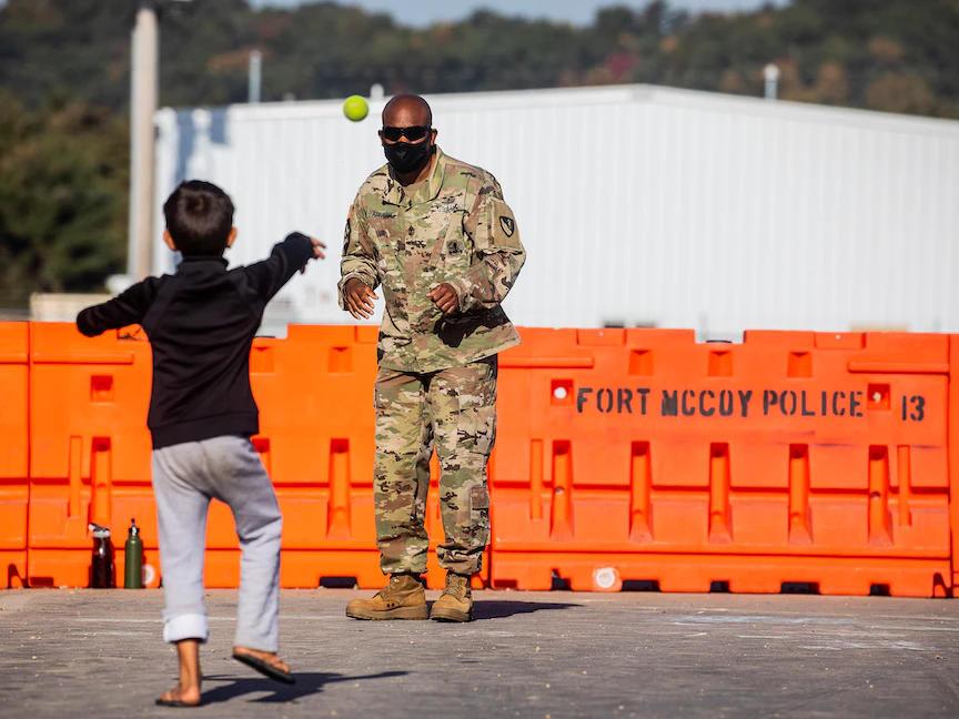 وبعد أكثر من شهر، باتت القاعدة النائية، التي تبعد نحو 273 كيلومتراً من ميلووكي، موطناً لـ 12600 أفغاني، نصفهم تقريباً من الأطفال، وأكبر من أي مدينة في مقاطعة مونرو في غرب ولاية ويسكونسن.