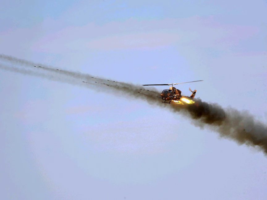 مروحية تابعة للجيش الإيراني خلال تدريب عسكري في شمال غرب البلاد، بالقرب من الحدود الإيرانية الأذربيجانية  - 1 أكتوبر 2021 - AFP