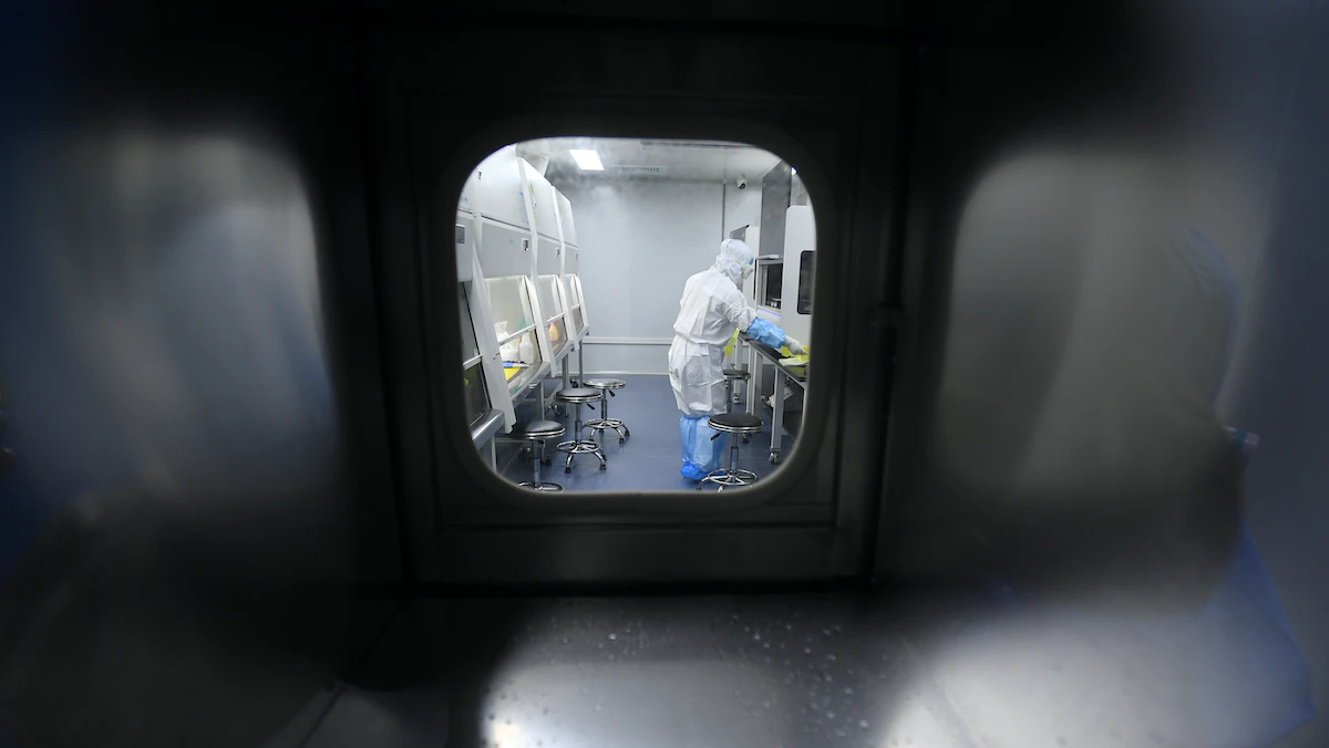 عالم يفحص عينات داخل مختبر ووهان بعد تفشي فيروس كورونا- 6 فبراير 2020 - REUTERS