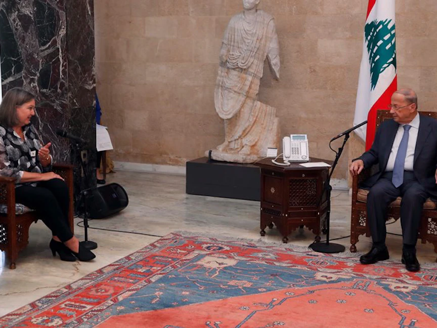 وذكرت الوكالة الوطنية اللبنانية أن عون أبلغ المسؤولة الأميركية بأن لبنان يرغب في استئناف مفاوضات الترسيم "لاستكمال عملية التنقيب عن النفط والغاز في مياهه الإقليمية؛ نظراً لأهمية ذلك في تحقيق النهوض الاقتصادي للبلاد".