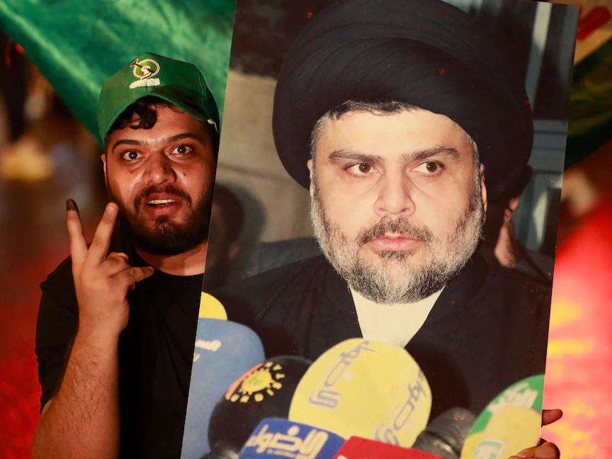 ووعد الصدر بـ"تحالفات وطنية" تبتعد عن العرقية، والطائفية وتكون "تحت خيمة الإصلاح، وتتوافق مع تطلعات الشعب لتكوين حكومة خدمية نزيهة"، مؤكداً أنها "ستقدم مصالح العراق العامة على المصالح الشخصية والعرقية والفئوية، والطائفية والحزبية".