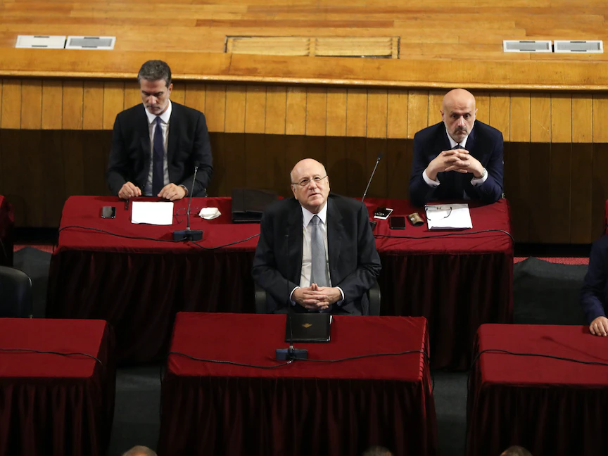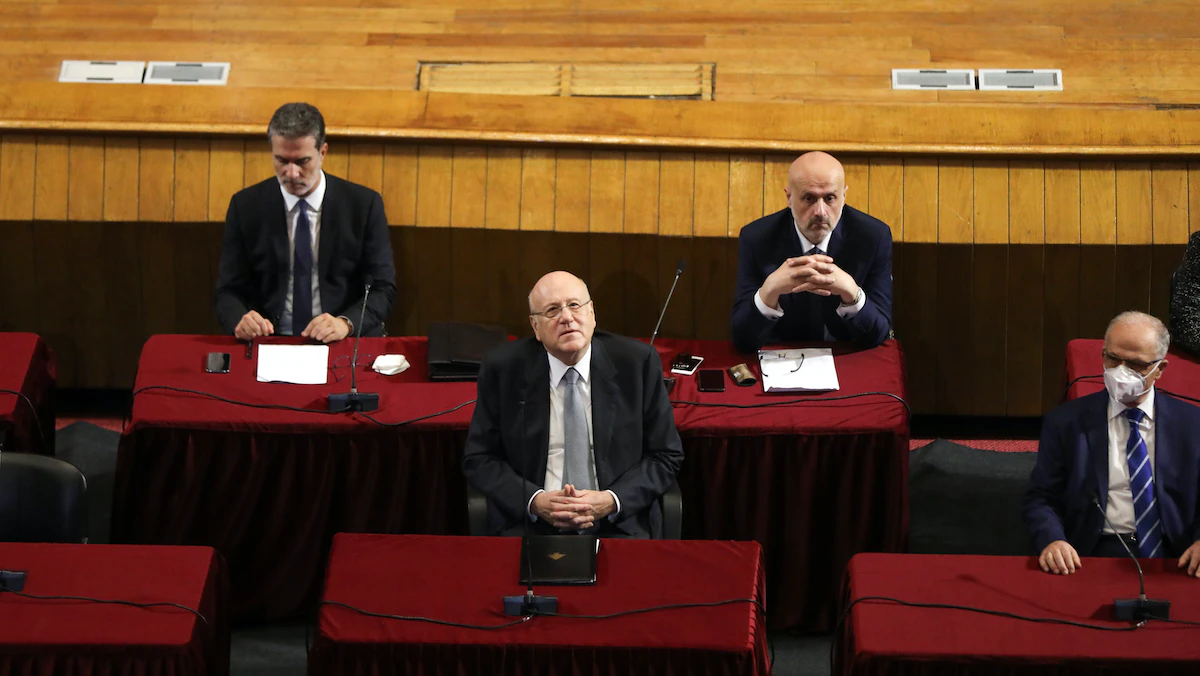 رئيس الوزراء اللبناني نجيب ميقاتي خلال جلسة أمام مجلس النواب - 20 سبتمبر 2021 - REUTERS