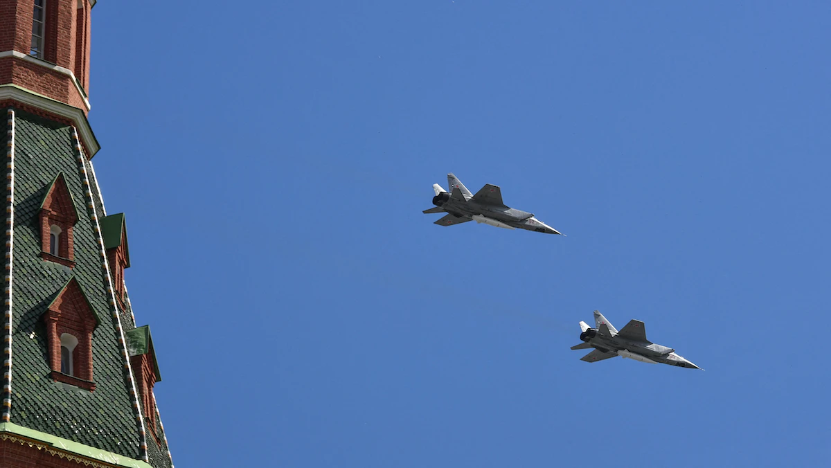 طائرات اعتراضية روسية من طراز MiG-31 تحلق فوق الميدان الأحمر في موسكو - 9 مايو 2018 - AFP
