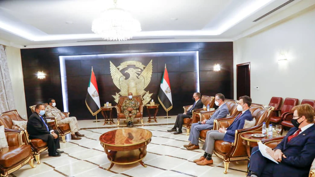 المبعوث الأميركي الخاص للقرن الإفريقي جيفري فيلتمان، يلتقي رئيس مجلس السيادة السوداني عبد الفتاح البرهان، ونائبه محمد حمدان دقلو، ورئيس الوزراء عبد الله حمدوك - 23 أكتوبر 2021 - facebook@TransitionalSovereigntyCouncil