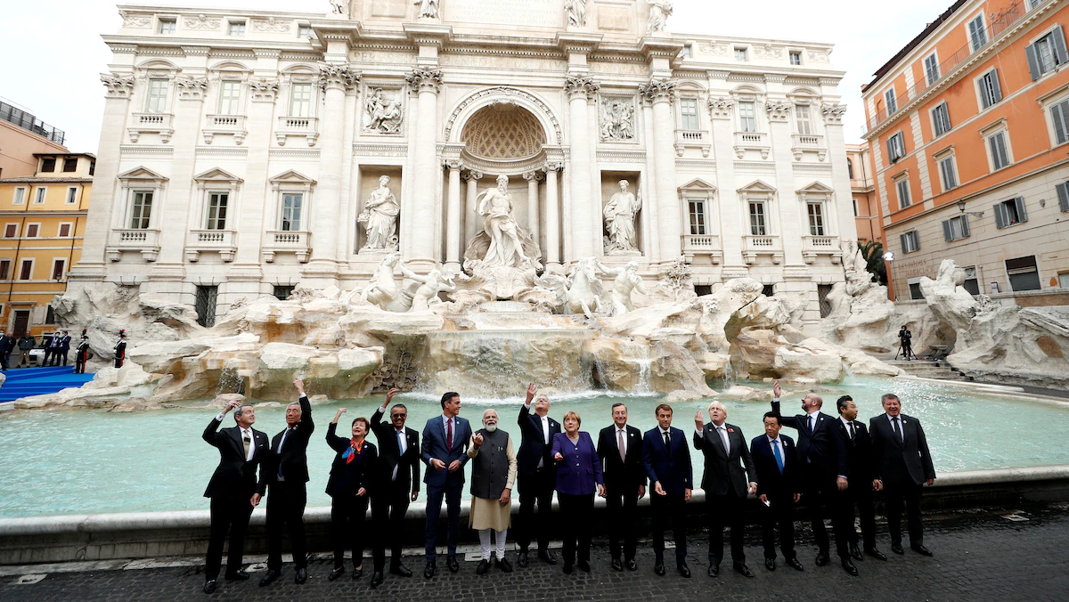 قادة مجموعة العشرين خلال مشاركتهم في القمة المنعقدة في روما. 30 أكتوبر 2021. - REUTERS
