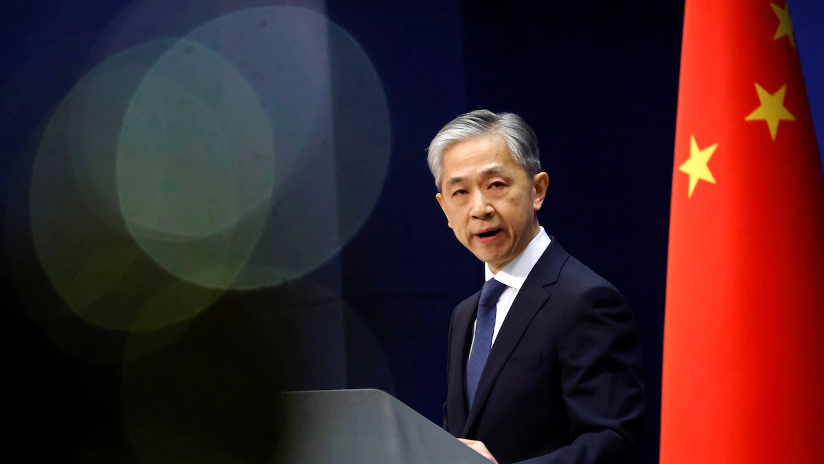 المتحدث باسم وزارة الخارجية الصينية وانج وين بين خلال مؤتمر في بكين، الصين في 14 ديسمبر 2020. - REUTERS