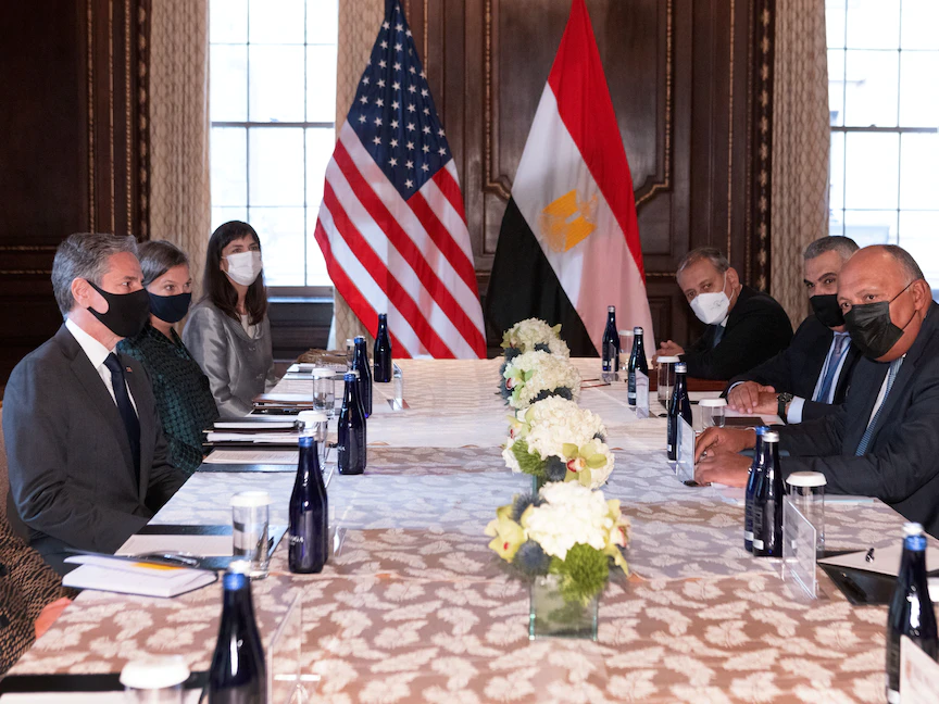وسيناقش الجانبان الأميركي والمصري القضايا الدولية والإقليمية، والتعاون الثنائي في المجالات الاقتصادية والقضائية والأمنية والتعليمية والثقافية، إلى جانب قضايا حقوق الإنسان، وفق بيان الخارجية الأميركية.