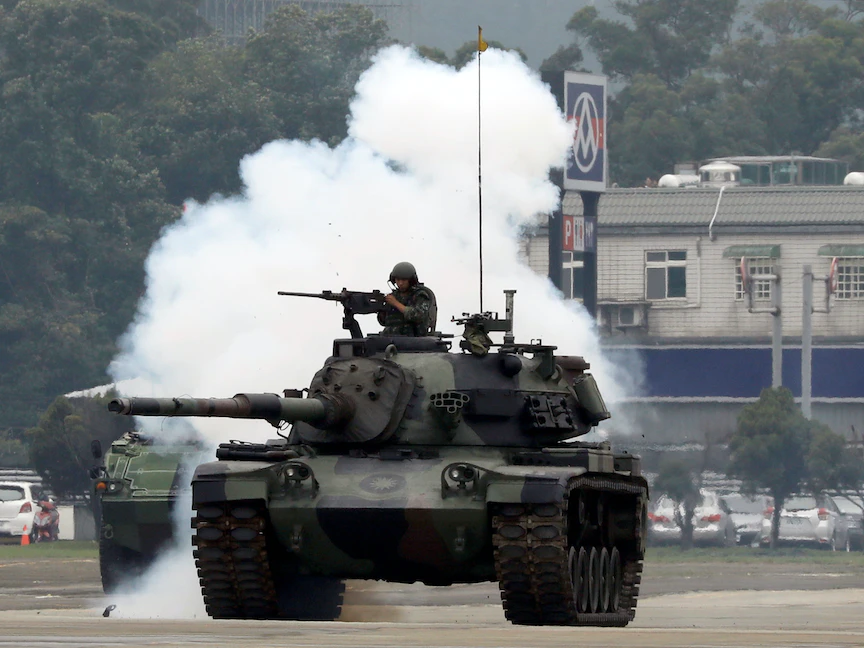 دبابة تايوانية خلال تدريبات تحاكي صدّ غزو  صيني للجزيرة - 9 أكتوبر 2018 - REUTERS