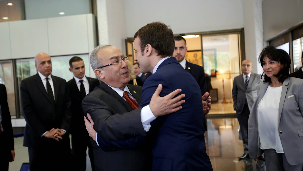 وزير الخارجية الجزائري رمطان لعمامرة يستقبل الرئيس الفرنسي إيمانويل ماكرون خلال حملته للرئاسيات الفرنسية - الجزائر - 13 فبراير 2017 - REUTERS