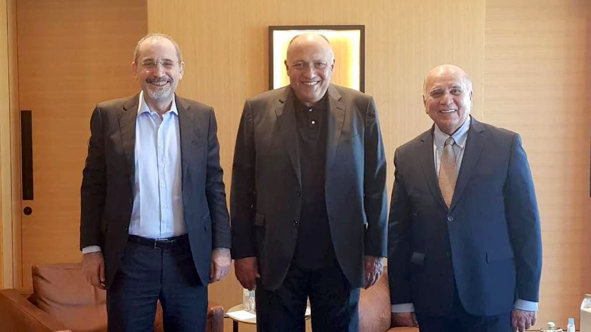 وذكر المتحدث باسم وزارة الخارجية المصرية أحمد حافظ، أن اللقاء بين وزراء خارجية مصر والأردن والعراق بحث "سبل تعزيز التشاور والتنسيق في إطار آلية التعاون الثلاثي، فضلاً عن بحث مُستجدات الموقف التنفيذي للمشروعات المُشتركة بين الدول الثلاث الشقيقة".
