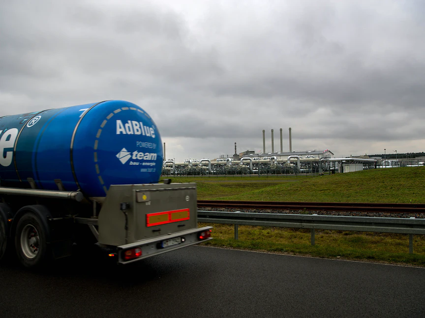 شاحنة تمر أمام محطة استقبال الغاز "نورد ستريم 2" في ألمانيا. 11 نوفمبر 2021 - Bloomberg
