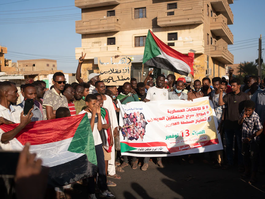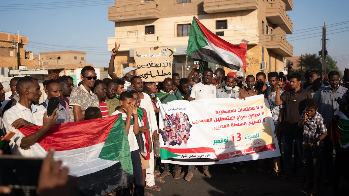 واحتج المتظاهرون الأربعاء في شوارع الخرطوم على القرارات التي أعلنها قائد الجيش عبد الفتاح البرهان في 25 أكتوبر الماضي، وكان أبرزها حلّ مؤسسات الحكم الانتقالي وتوقيف عبد الله حمدوك وعدد من أعضاء حكومته.