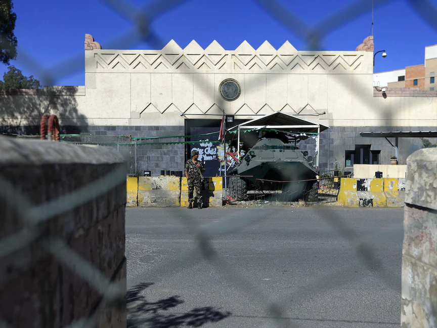 وتم إغلاق السفارة الأميركية في صنعاء عام 2015، بعدما استولى الحوثيون على العاصمة اليمنية، لكن بعض الموظفين اليمنيين استمروا في العمل من المنزل أو كحراس أمن للمباني.