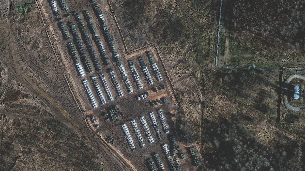حشود عسكرية روسية على حدود أوكرانيا، في صورة التقطتها أقمار اصطناعية ونشرتها شركة "ماكسار" - 1 نوفمبر 2021 - AFP