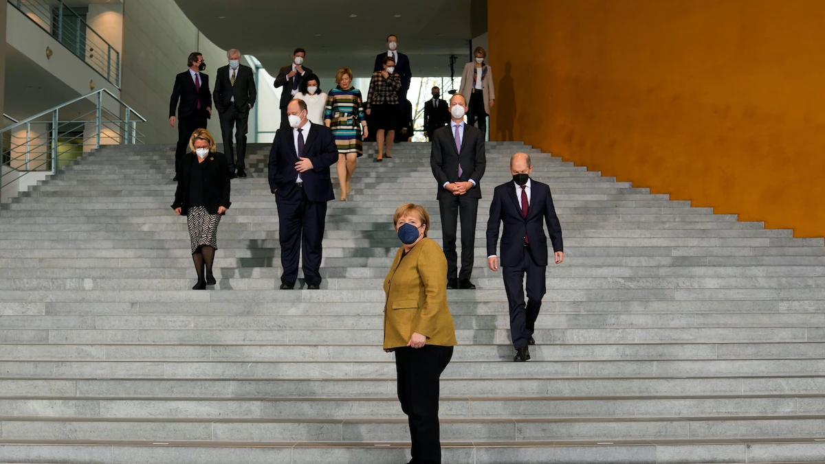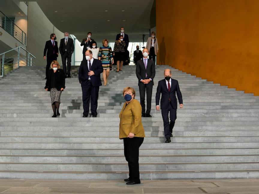 وترأست ميركل ما قد يكون اجتماعها الأخير لمجلس الوزراء، وودعت زملاءها ورفاقها، بعد أن قدم لها شولتز شجرة لتزرعها في حديقتها كهدية وداع، وفقاً لأحد الحضور في الاجتماع.