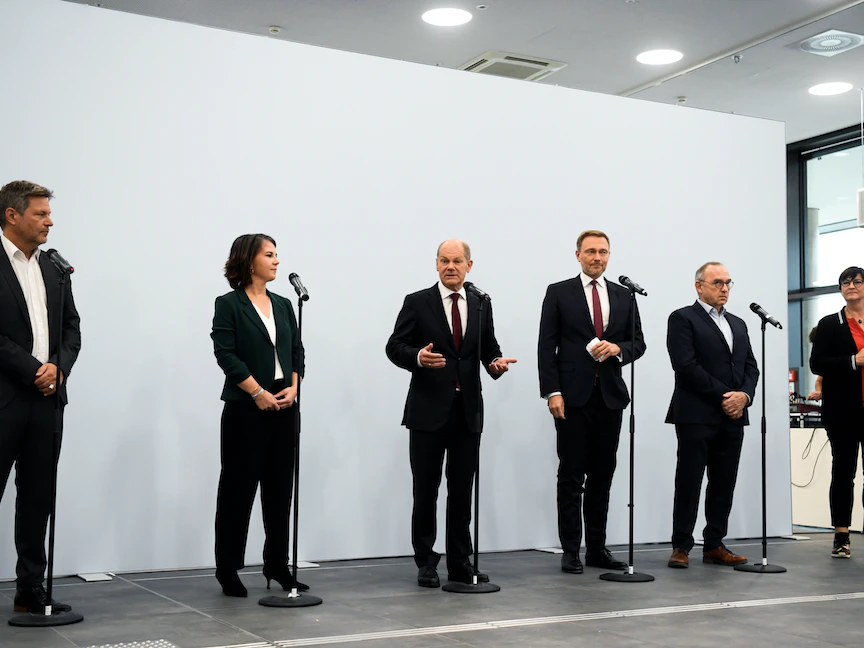 ويتعهد التحالف الثلاثي، المعروف بائتلاف "إشارة المرور" نسبة للون المميز لكل حزب من الأحزاب الثلاثة المشاركة فيه، بتحديث أكبر اقتصاد في أوروبا من خلال تحديث بنيته التحتية والإسراع بتنفيذ إجراءات حماية المناخ.
