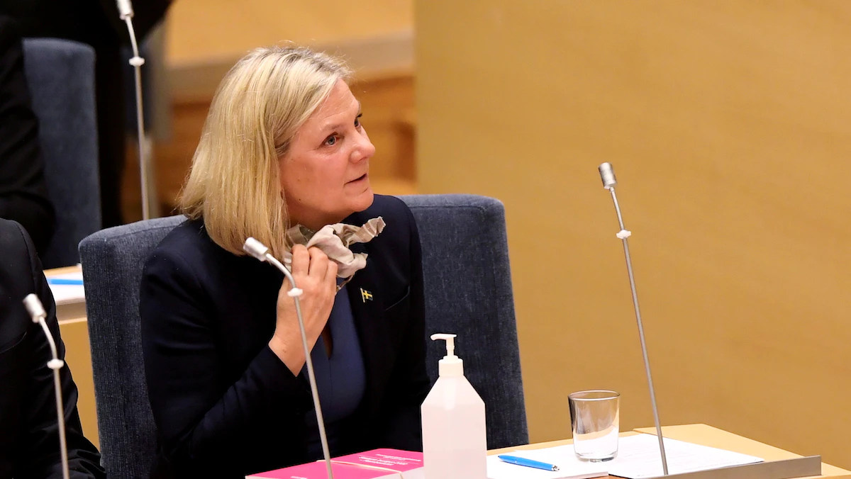 رئيسة الوزراء السويدية المستقيلة ماجدالينا أندرسون بعد تعيينها في المنصب بعد التصويت في البرلمان في ستوكهولم، السويد. 24 نوفمبر 2021. - via REUTERS