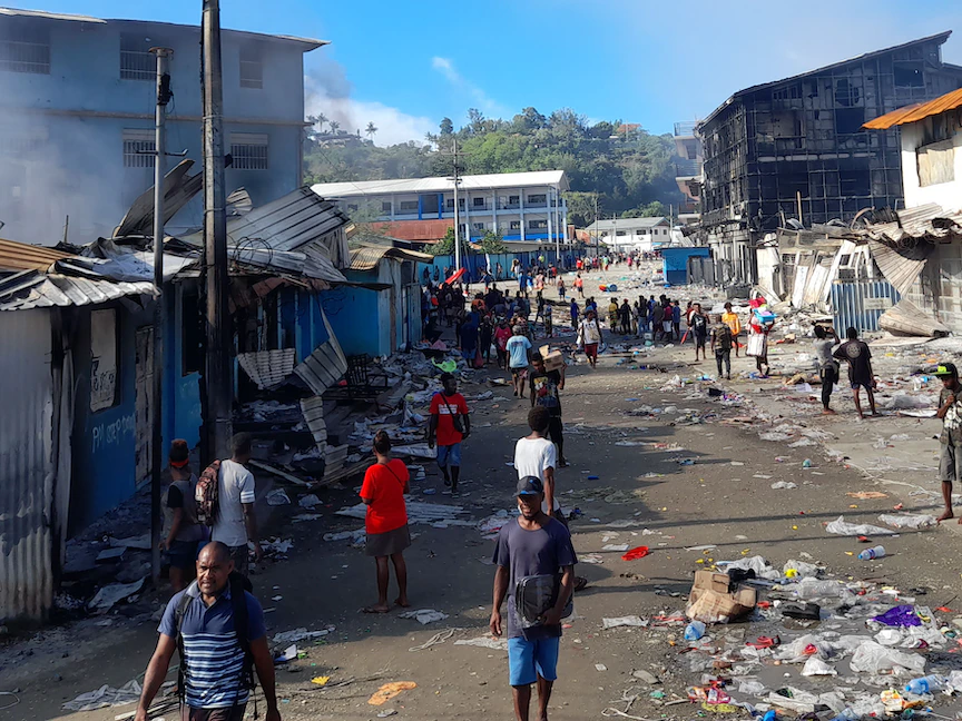 وبدأت أعمال الشغب الأربعاء عندما تظاهر مئات الأشخاص، مطالبين باستقالة رئيس الوزراء قبل أن يتوجهوا إلى الحي الصيني في هونيارا الذي تسكنه 80 ألف نسمة.