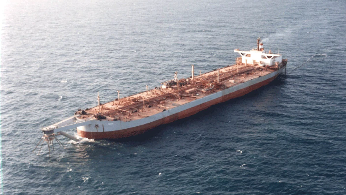 وصافر التي صُنعت قبل 45 عاماً وتُستخدم كمنصّة تخزين عائمة، محمّلة بنحو 1.1 مليون برميل من النفط الخام يقدّر ثمنها بحوالي 40 مليون دولار. ولم تخضع السفينة لأي صيانة منذ 2015، ما أدّى إلى تآكل هيكلها وتردّي حالتها.