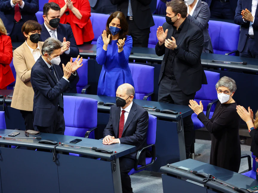ويتسلم شولتس مقاليد السلطة على رأس أول حكومة تكافؤ في ألمانيا، تتولى نساء فيها وزارات أساسية مع تعيين البيئية أنالينا بيربوك وزيرة للخارجية والاشتراكيتين الديمقراطيتين كريستين لامبريشت وزيرة للدفاع ونانسي فيسر وزيرة للداخلية.
