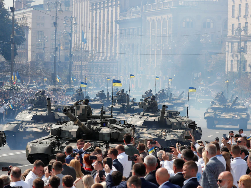 دبابات خلال عرض عسكري في كييف، أوكرانيا - 24 أغسطس 2021 - REUTERS