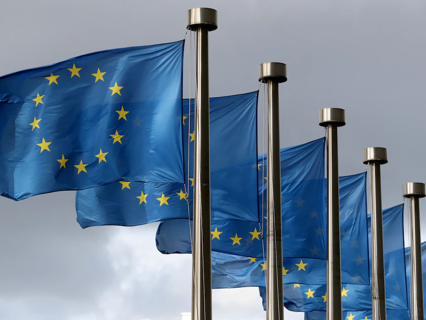 أعلام الاتحاد الأوروبي أمام مقر المفوضية الأوروبية في بروكسل - 2 أكتوبر 2019 - REUTERS
