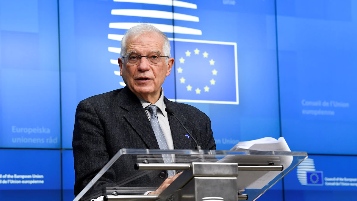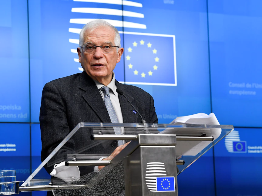 جوزيب بوريل بعد اجتماع مع وزراء الخارجية الأوروبيين في مقر الاتحاد الأوروبي في بروكسل، 25 يناير 2021 - REUTERS