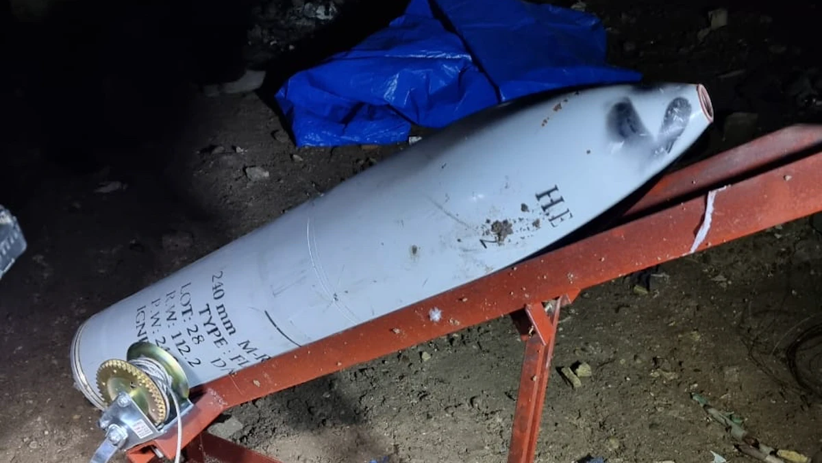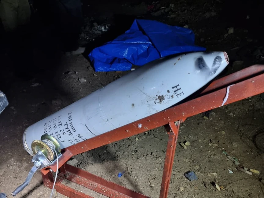 منصة لإطلاق الصواريخ عليها صاروخ، عثرت عليها القوات الأمنية العراقية بعد الهجوم على معسكر النصر، 5 يناير 2022 - خلية الإعلام الأمني العراقية