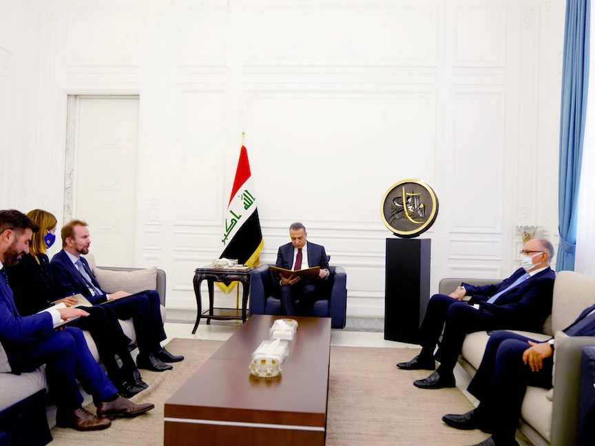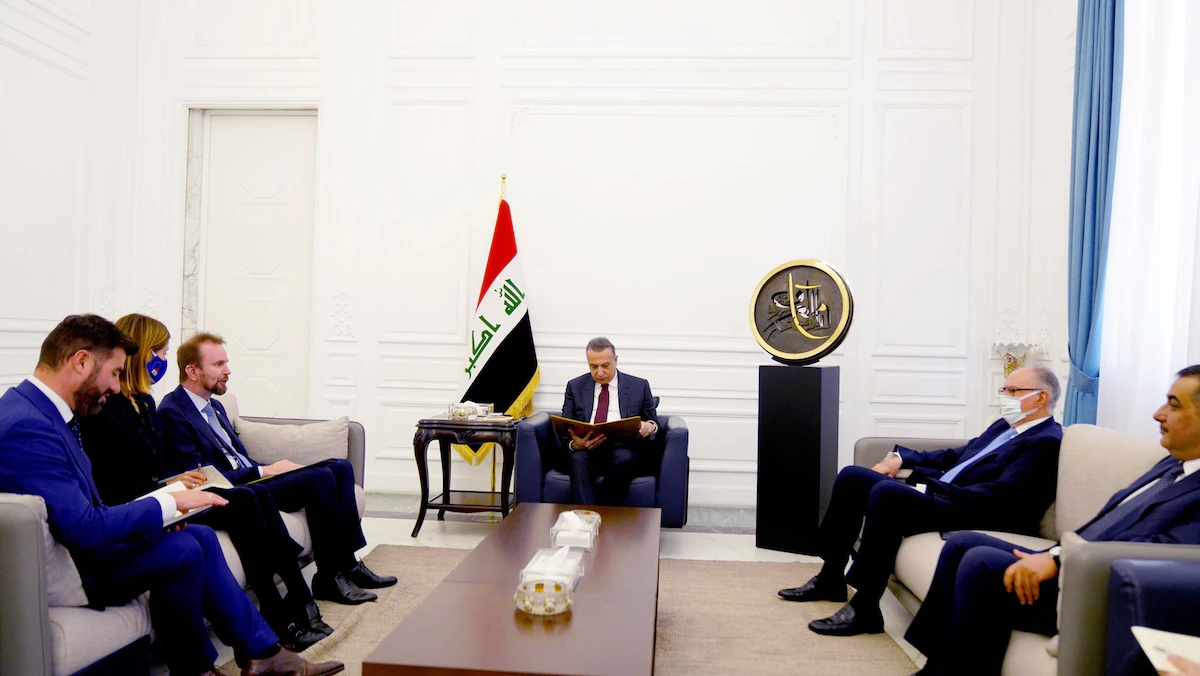 رئيس الوزراء العراقي مصطفى الكاظمي يستقبل سفير الاتحاد الأوروبي لدى العراق فيليه فاريولا - 9 يناير 2022 - twitter/IraqiPMO/status