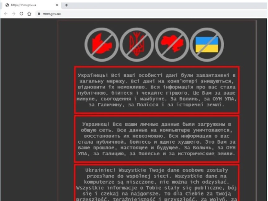 وحمل هذا الهجوم السيبراني، رسالة تدعو الأوكرانيين إلى "الخوف وتوقع الأسوأ".