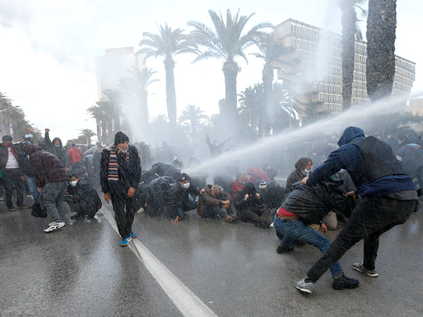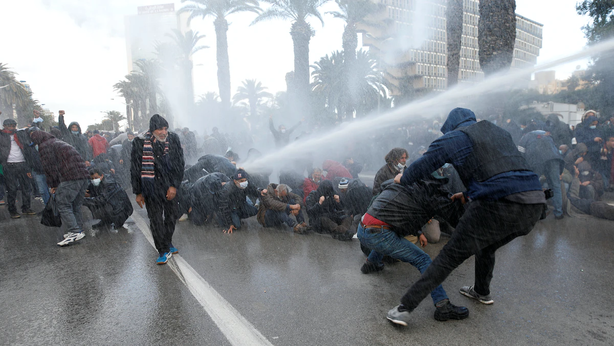 خرجت تظاهرات في العاصمة تونس، الجمعة، دعت إليها أحزاب معارضة، رغم قرار الحكومة منع أي تجمعات في محاولة لوقف تفشي فيروس كورونا، فيما أفادت إذاعة "موزاييك" التونسية، بأن الشرطة أطلقت الغاز واستخدمت خراطيم المياه، لتفريق المحتجين.