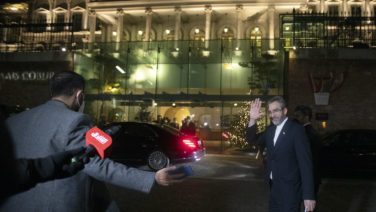 كبير المفاوضين النوويين الإيرانيين علي باقري بعد حديثه للصحافيين على هامش مفاوضات فيينا، النمسا - 27 ديسمبر 2021 - AFP