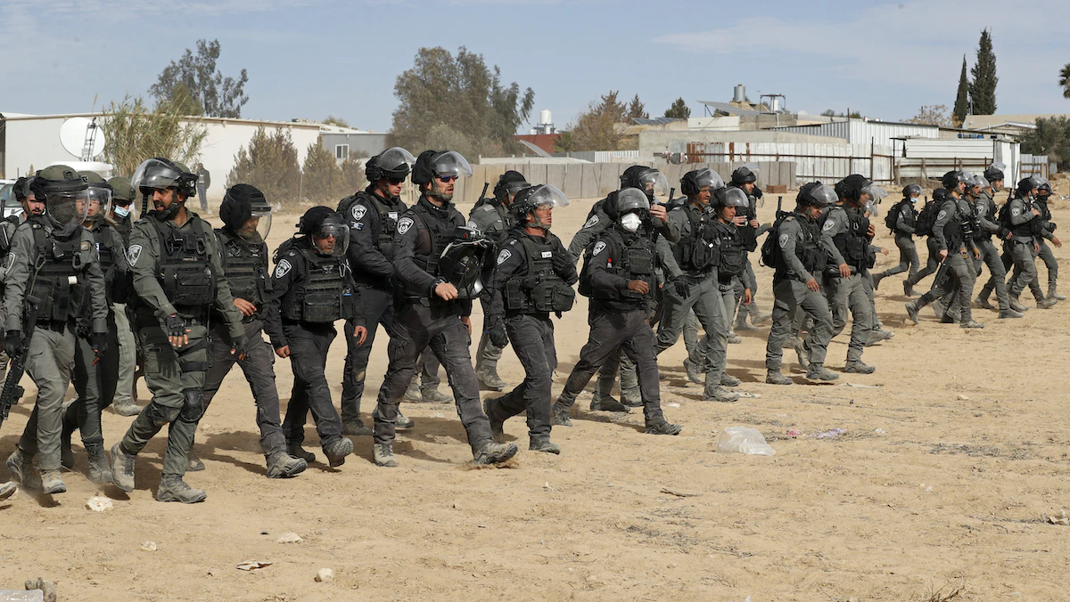 عناصر من الشرطة الإسرائيلية في حالة تأهب للتعامل مع مظاهرة للبدو في النقب - 12 يناير 2022 - AFP