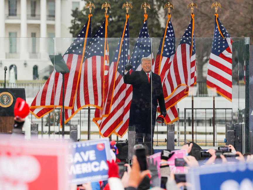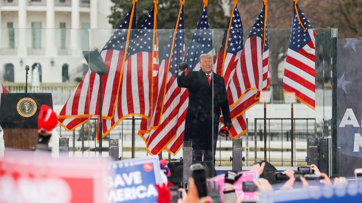 الرئيس الأميركي دونالد ترمب خلال تجمع للطعن في التصديق على نتائج الانتخابات الرئاسية الأمريكية، 6 يناير 2021 - REUTERS